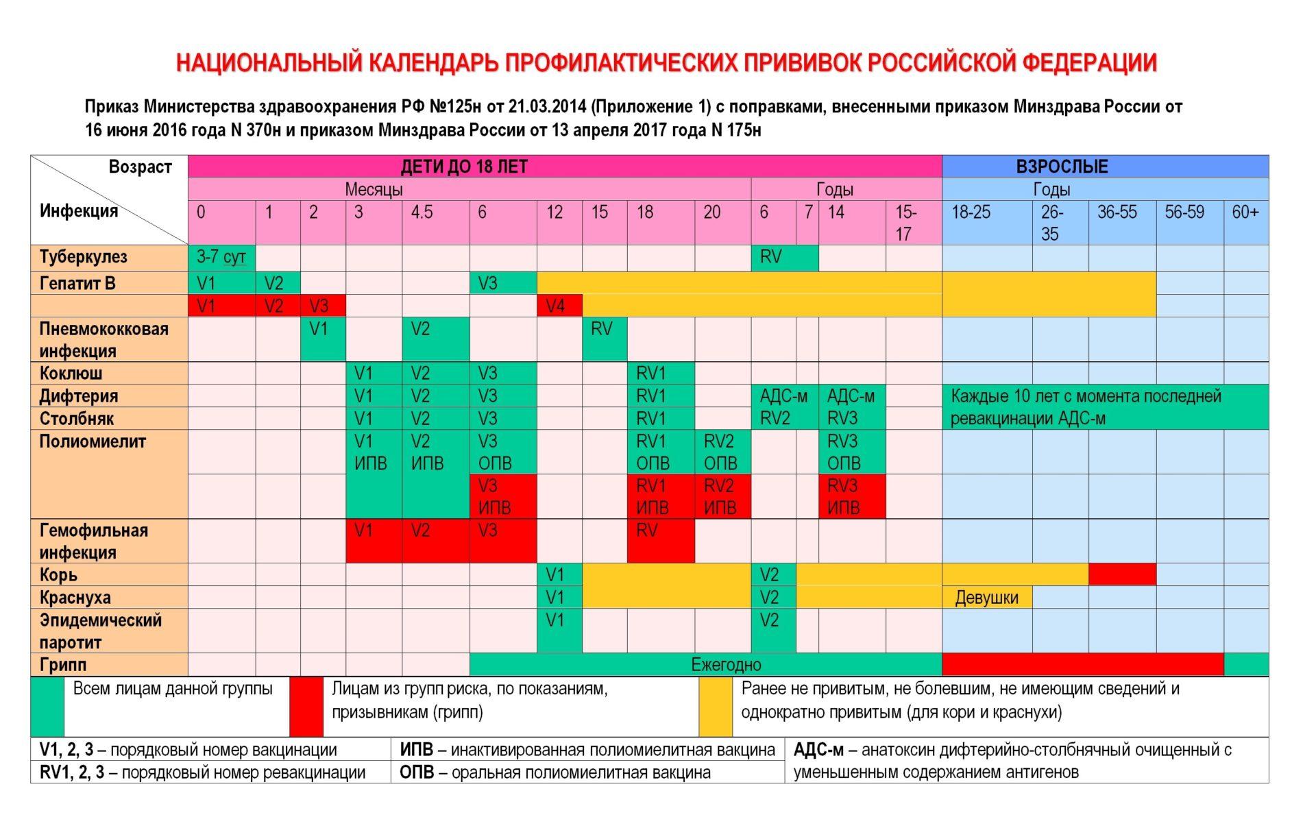 В рамках национального календаря проводится вакцинация следующими профилактическими прививками